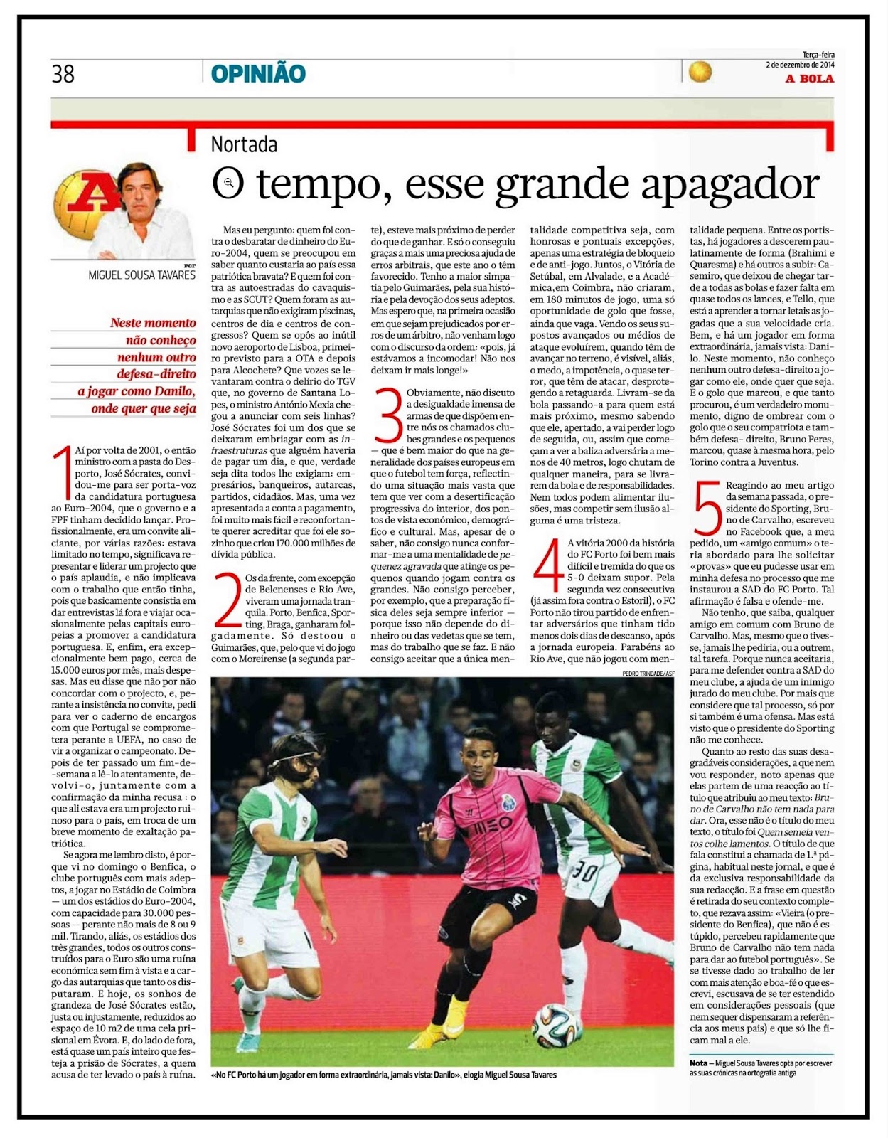 » "o tempo, esse grande apagador" (aqui), igualmente do enfant terrible Miguel Sousa Tavares.