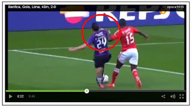 lance que ocorreu aos 39' minutos, antecedeu o segundo golo do 5lb, e que, pleas mesmas razões atrás apontadas, pode ser (re)visto em imagens GIF aqui (jogada corrida) e aqui (posteriores repetições).